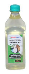 Nature Drops Cold Pressed Coconut Oil is extracted from top quality coconut copra which is dried under direct sunlight without applying external high heat or chemicals. Our Cold Pressed Coconut oil is filtered by traditional method known as Sedimentation process and packed in Branded Bottle under hygiene condition. No machines or automations are used for filtering and packing the oil. You can see our brand Name “Nature Drops” etched on two opposite sides of the bottle.